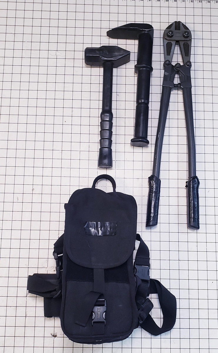 Breaching Kit Includes: Bolt Cutter,Pike, Mini Sledgehammer and Backpack.